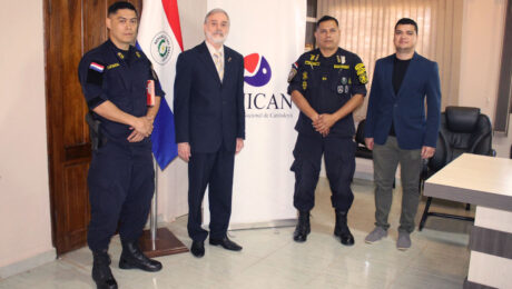 (Saltos del Guairá, 21/10/2025) El Rector de la Universidad Nacional de Canindeyú (UNICAN), Dr. Mariano Adolfo Pacher Morel, junto al Decano de la Facultad de Ciencias y Tecnología (FACITEC), MSc. Rodrigo Javier Martínez Meza, mantuvieron una reunión con el Crio. Gral. Insp. Mario Z. Pérez, Jefe del Departamento de Seguridad Ciudadana de Canindeyú, y el Suboficial Mayor PS. Abg. Casio Esquivel Martínez, Ayudante de la Dirección de Policía del Departamento de Canindeyú. (más…)